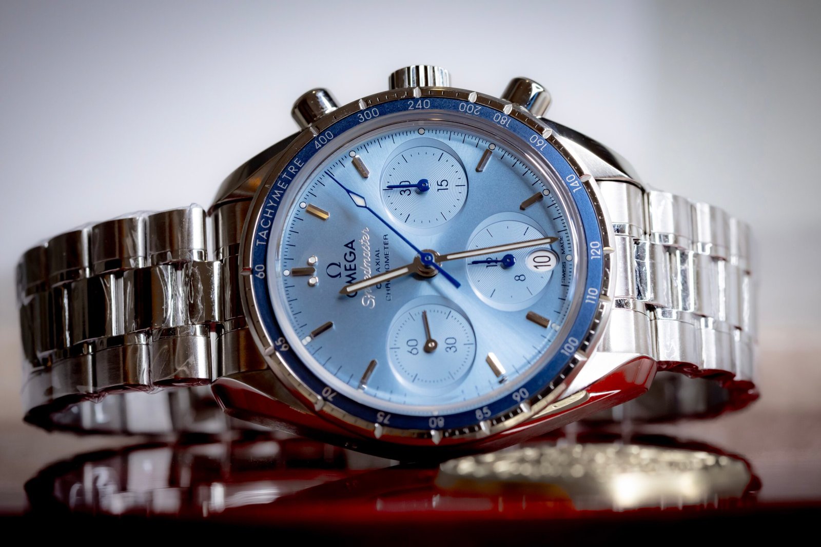 The horizontal sub-dial layout gives it that classic chronograph aesthetic, while the polished accents and sunburst finish elevate it beyond a typical sports watch. Powered by Omega’s reliable automatic chronograph movement, this is a true grab-and-go piece that blends heritage with daily functionality.