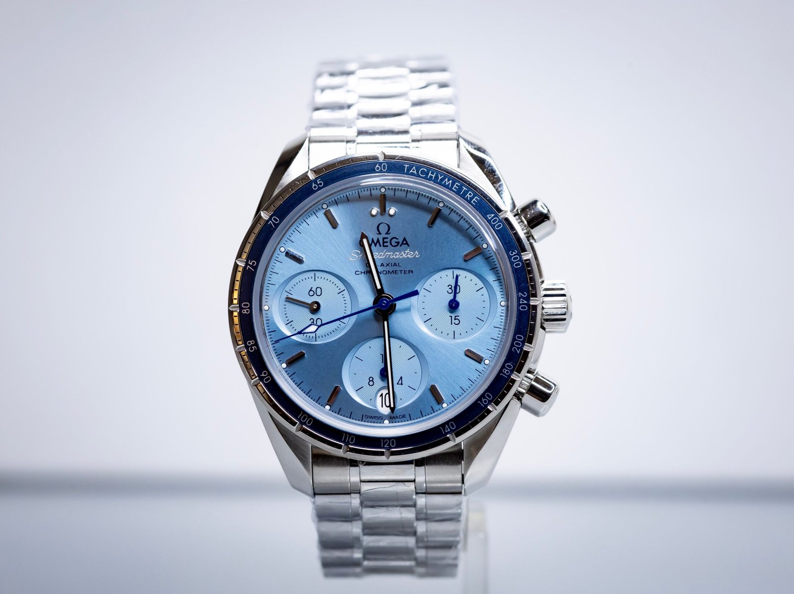 The Omega Speedmaster 38 brings the iconic Speedy design into a versatile, modern 38mm case — perfect for everyday wear without sacrificing presence. This 2025 example features a stunning sunburst blue dial paired with a full stainless steel bracelet, delivering a clean and refined look that stands out on wrist.