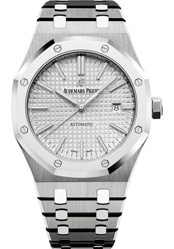 41 mm titanium case, 9.8 mm thick, glareproofed sapphire crystal back engraved with the legend QE II CUP 2017 LIMITED EDITION, polished 950 platinum bezel, glareproofed sapphire crystal, rhodium-toned dial with Grande Tapisserie” pattern, white gold applied hour-markers and Royal Oak hands with luminescent coating, Calibre 3120 selfwinding movement with dive-time measurement, hours, minutes, center seconds and date, approximately 60 hours of power reserve, titanium bracelet with polished 950 platinum links, titanium AP folding buckle. Water resistant to 50 meters.