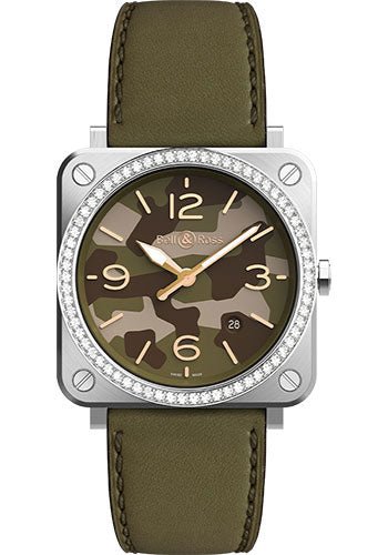 Bell & Ross BR S Green Camo Diamonds Watch – Calfskin Strap