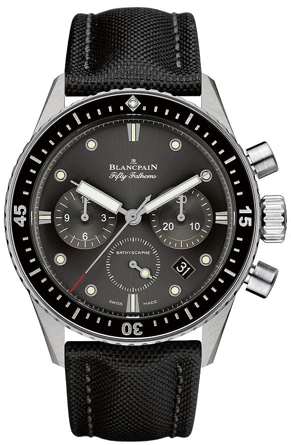 Blancpain Fifty Fathoms Bathyscaphe Chronographe Flyback Grey Steel Black Canvas Men’s Watch – 5200 1110 B52A