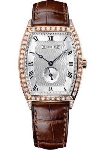 29.6 mm rose gold case, 11.2 mm thick, set with diamonds end pieces, set with diamonds bezel, silver dial, calibre 537/2 self-winding movement, approximately 40 hours of power reserve, brown leather strap. Water resistant to 30 meters.