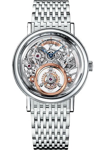 40mm platinum case, 9.65mm thick, silvered gold dial with running seconds on the tourbillon shaft, caliber 558 SQ2 hand-winding movement, approximately 50 hours of power reserve, platinum bracelet. Water resistant to 30 meters.