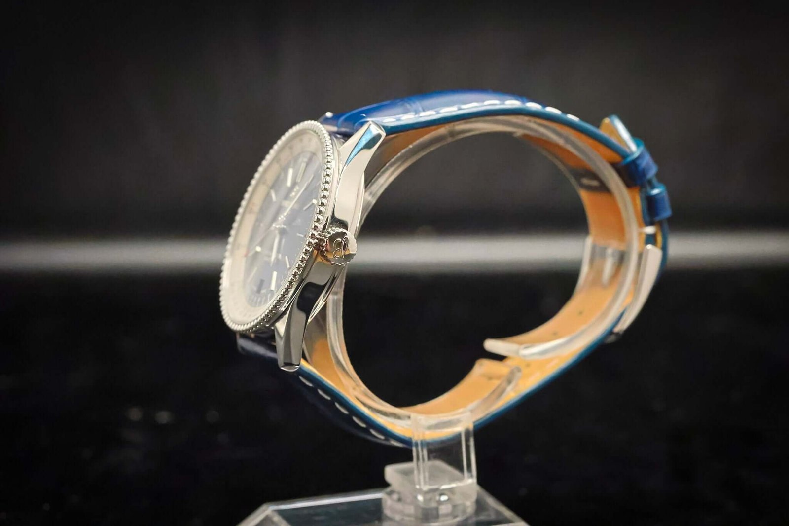 Powered by the Breitling Caliber 17 automatic movement with a 38-hour power reserve, the Navitimer Automatic 41 delivers precision, reliability, and enduring style. Water resistant to 30 meters and protected by a domed sapphire crystal, this model is perfect for both collectors and everyday wearers who appreciate Breitling’s aviation legacy.