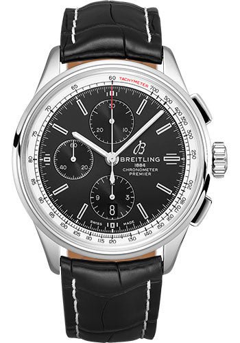 Breitling Premier Chronograph Watch – 42mm Steel Case – Black Dial – Black Croco Strap – A13315351B1P1