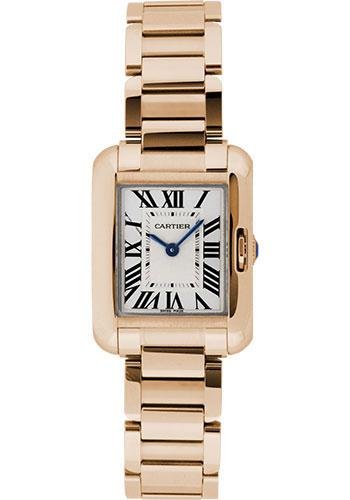 Small size (30.2mm x 22.7mm) 18K pink gold case, nine-sided crown set with a sapphire, sapphire crystal, slivered and lacquered flinque dial with Roman numerals and sword-shaped blued-steel hands, quartz caliber Cartier 057 movement, 18K pink gold bracelet. Water resistant to 30 meters.