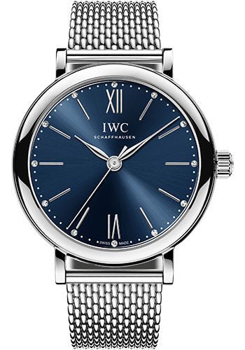 34.0 mm stainless steel case, 8.6 mm thick, convex sapphire glass crystal with antireflective coating on both sides, blue dial, calibre 35100 automatic movement with date, hours, minutes, seconds, approximately 42 hours of power reserve, milanaise mesh stainless steel bracelet. Water resistant to 3 bar.