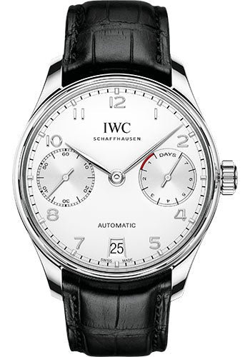 42.3 mm stainless steel case, 14.2 mm thick, see-through sapphire glass back, convex sapphire glass crystal with antireflective coating on both sides, silver-plated dial, calibre 52010 automatic movement with date, hours, minutes, small seconds, power reserve indicator, approximately 168 hours of power reserve, black alligator leather strap. Water resistant to 3 bar.