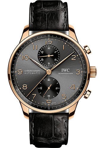 41.0 mm 18K 5N gold case, 13.0 mm thick, see-through sapphire glass back, convex sapphire glass crystal with antireflective coating on both sides, slate-coloured dial, calibre 69355 automatic movement with chronograph, column wheel, hours, minutes, small seconds, approximately 46 hours of power reserve, black alligator leather strap by santoni. Water resistant to 3 bar.
