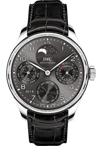 44.2 mm 18K white gold case, 14.9 mm thick, see-through sapphire glass back, arched-edge sapphire glass crystal with antireflective coating on both sides, slate-coloured dial, calibre 52610 automatic movement with date, day, month, perpetual calendar, year indicator, hours, minutes, small seconds, moonphase, power reserve indicator, approximately 168 hours of power reserve, black alligator leather strap by santoni. Water resistant to 3 bar.
