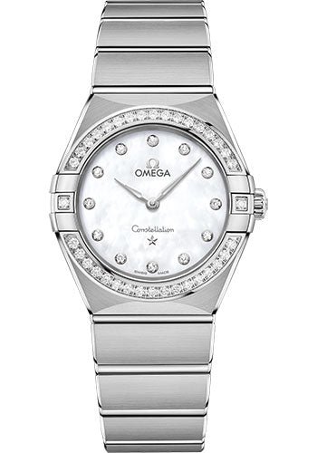 Omega Constellation Manhattan Quartz Watch – 28 mm Steel Case – Diamond-Paved Bezel – Mother-Of-Pearl Diamond Dial – 131.15.28.60.55.001