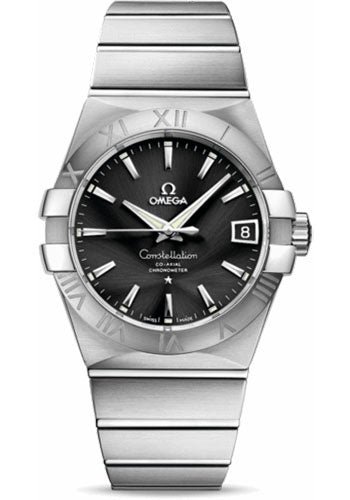 38 mm brushed stainless steel case, transparent back, domed scratch-resistant sapphire crystal with anti-reflective treatment both sides, black dial, self-winding chronometer Omega 8500 movement with Co-Axial Escapement, date, and seconds, approximately 60 hours of power reserve, stainless steel bracelet. Water resistant to 100 m.