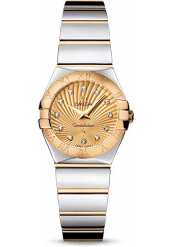 Omega Ladies Constellation Polished Quartz Watch – 24 mm Polished Steel And Yellow Gold Case – Champagne Diamond Dial – Steel And Yellow Gold Bracelet – 123.20.24.60.58.002
