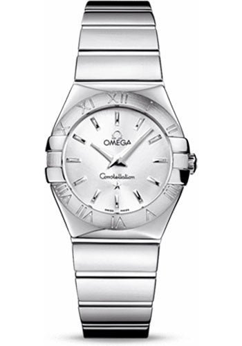 27 mm polished stainless steel case, domed scratch-resistant sapphire crystal with anti-reflective treatment inside, silver dial, quartz Omega 1376 movement, approximately 32 months of power reserve, stainless steel bracelet. Water resistant to 100 m.