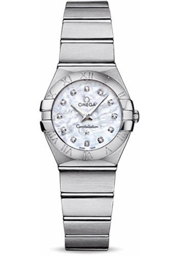 Omega Ladies Constellation Quartz Watch – 24 mm Brushed Steel Case – Mother-Of-Pearl Diamond Dial – 123.10.24.60.55.001