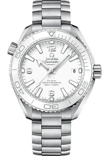 39.5 mm stainless steel case with helium escape valve, transparent screw-in back, screw-in crown, unidirectional rotating white cermaic bezel with Ceragold diving scale, domed scratch-resistant sapphire crystal with anti-reflective treatment on both sides, white dial with Arabic numerals and a date window at the 3 o’clock, caliber 8800 self-winding Co-Axial chronometer movement with date function, approximately 55 hours of power reserve, stainless steel bracelet. Water resistant to 600 m (2000 ft).