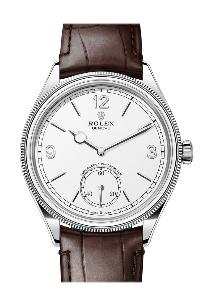 Step into the realm of sophistication and refinement with the Rolex 1908 39mm Intense White Dial White Gold Men’s Watch, an embodiment of timeless elegance and unparalleled craftsmanship. This unworn masterpiece, featuring a 39mm case diameter, defines luxury in its purest form.