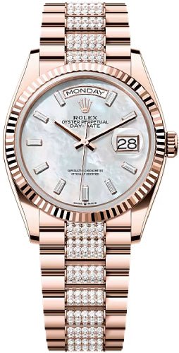 Rolex Day-Date 36 36mm White MOP Diamond-Set Dial Fluted Bezel President Bracelet – 128235 | 2024 Model