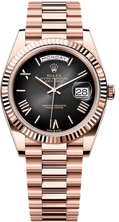 Rolex Day-Date 40 40mm Slate Ombré Roman Dial Fluted Bezel President Bracelet – 228235 | 2024 Model