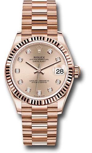 Rolex Everose Gold Datejust 31 Watch – Fluted Bezel – Rose Diamond Dial – President Bracelet – 278275 rsdp