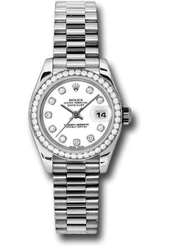 Rolex Platinum Lady-Datejust 26 Watch – 42 Diamond Bezel – White Diamond Dial – President Bracelet – 179136 wdp