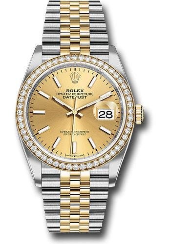Rolex Steel and Yellow Gold Rolesor Datejust 36 Watch – Yellow Diamond Bezel – Champagne Index Dial – Jubilee Bracelet – 126283RBR chij