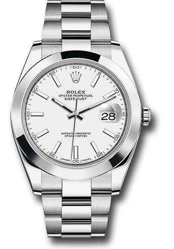 Rolex Steel Datejust 41 Watch – Smooth Bezel – White Index Dial – Oyster Bracelet – 126300 wio