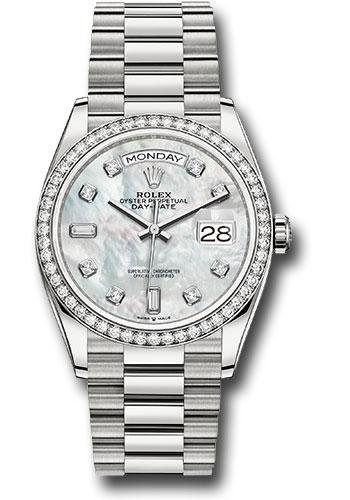 Rolex White Gold Day-Date 36 Watch – Diamond Bezel – Mother-of-Pearl Diamond Dial – President Bracelet – 128349RBR mdp