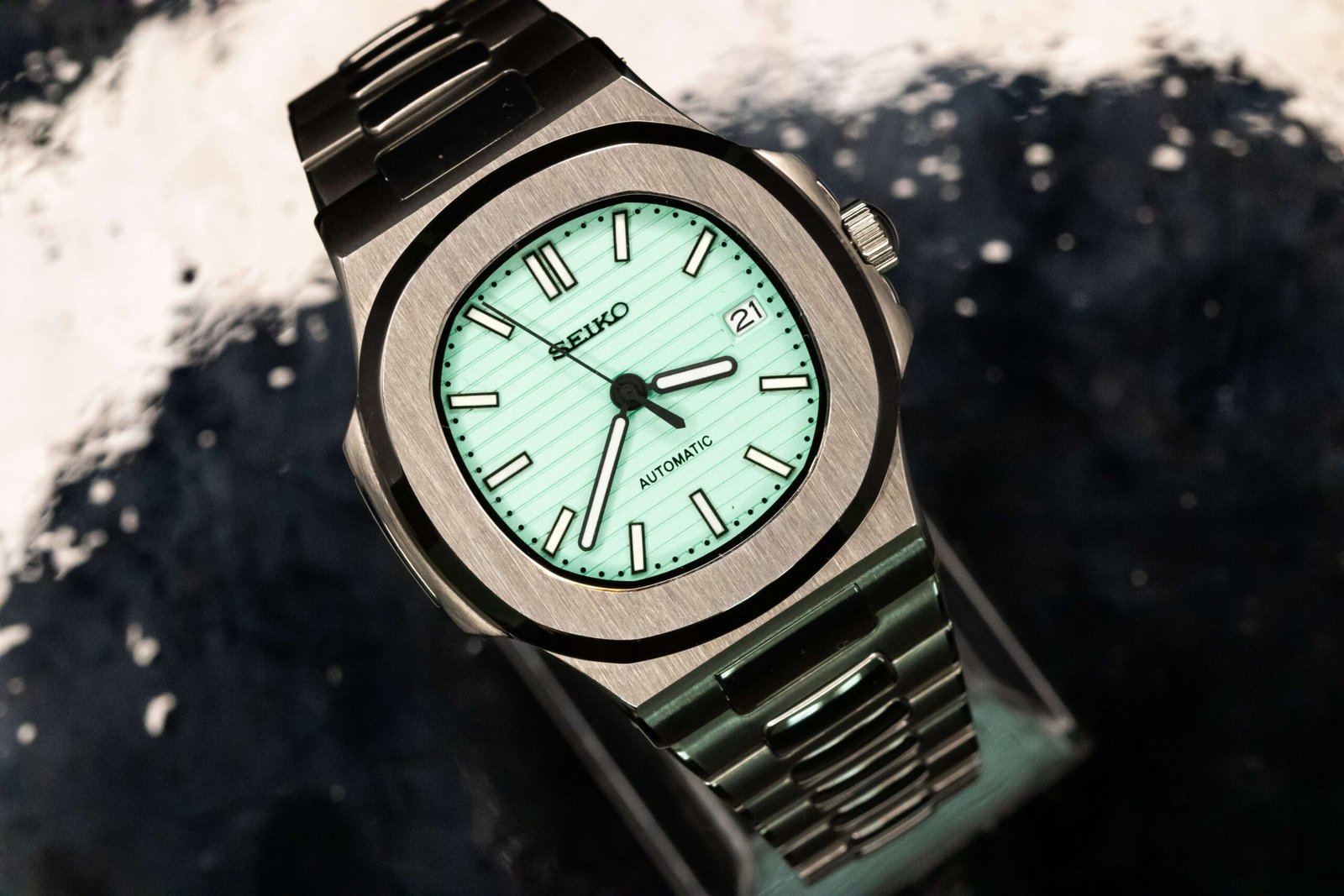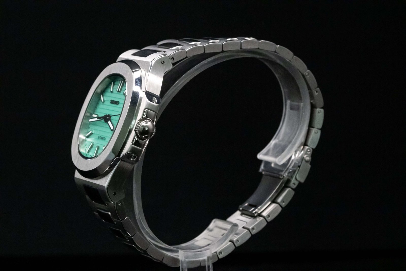 This nautilus homage is an exquisite creation, embodying elegance and class. It features a captivating white dial. Powered by a precise Japanese movement, this timepiece guarantees reliability and performance. Its silver casing not only enhances its sophisticated allure but also promises comfort for everyday wear. Experience the perfect blend of aesthetic beauty and technical mastery with a watch that stands as a testament to fine craftsmanship.