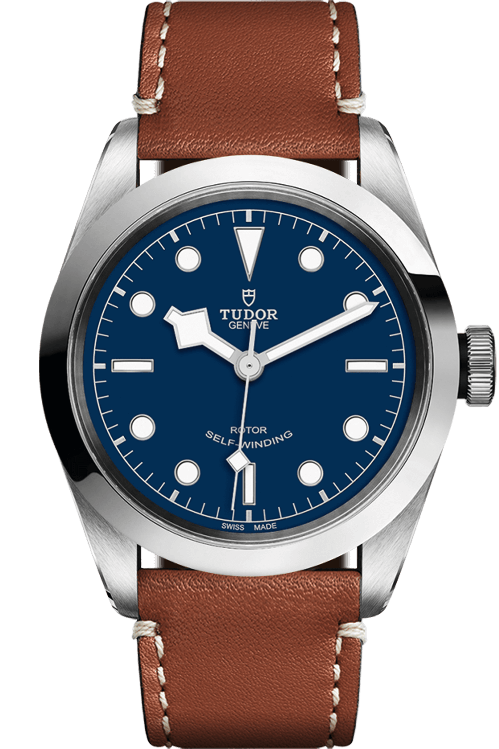 The aesthetic codes emblematic of the Black Bay are represented through a slimmer middle case with a fixed bezel in the Black Bay 41. Named for its 41 mm diameter, this sleek timepiece is fitted with the self-winding TUDOR Manufacture Caliber T601 with a power reserve of approximately 38 hours. With a deep blue dial juxtaposed against a brown leather strap, this style lends a vintage-inspired touch to your everyday look.