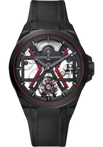 45 mm titanium and ceramic case, 13 mm thick, black dial, Caliber UN-172 self-winding movement, approximately 72 hours of power reserve, rubber strap. Water resistant to 50 m.