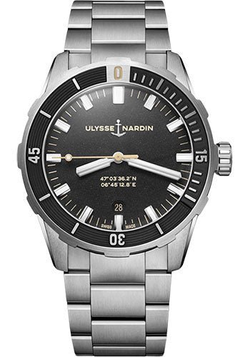 42 mm stainless steel case, black dial, Caliber UN-816 self-winding movement with date, approximately 42 hours of power reserve, steel bracelet, folding buckle. Water resistant to 300 m.