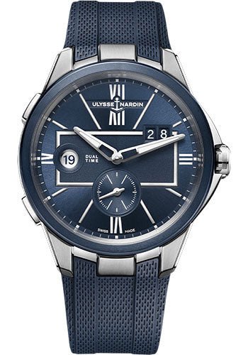 Ulysse Nardin Executive Dual Time 42 mm Beware of Blast – Steel Case – Blue Dial – Rubber Strap